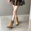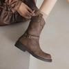 Retro belt buckle flat bottom rivet western boots knight boots short boots women's 2025 summer new British Martin boots single boots