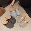 Rhinestone fishing net hollow fashionable slippers 2025 new summer fashion outer wear one pedal thick-soled bag head half slippers