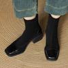 Krazing Pot Microfiber Flock Autumn Winter Shoes Thick Med Heels Size 43 Elastic Boots Stretch Patch Work Ankle Boots