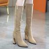 Fashion Knee High Snow High Boots Women Pointed Toe High Heels Suede Shoes Winter 2025 Trend Goth Chelsea Chunky Botas Mujer