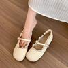 Fashion 2025 Women's Cow Leather Pleated Round Toe Slip-on Flats Sweet Flower Elastic Band Cross Strap Slip-on Thick Low Heeled Shoes