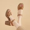 Fashion Open Toe Platform Block Heel Sandals Women Soft Leather 2025 New Summer Platform Versatile High Heeled Romans
