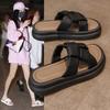 Cool slippers women's summer wear fashion 2025 new one-word drag thick-soled Velcro cross casual beach slippers women