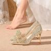 High heels women's summer 2025 new one-word with bow beautiful wedding shoes pointed head shallow mouth stiletto sandals women