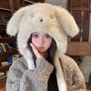 Cute moving fluffy dog hat female thickened warm ear protector plush hat