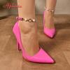 Fashion Aphixta Luxury Pearl Crystals Chain Pumps Women Shoes 10cm Super High Thin Heels Pointed Toe Patent Leather Office Stiletto Heel