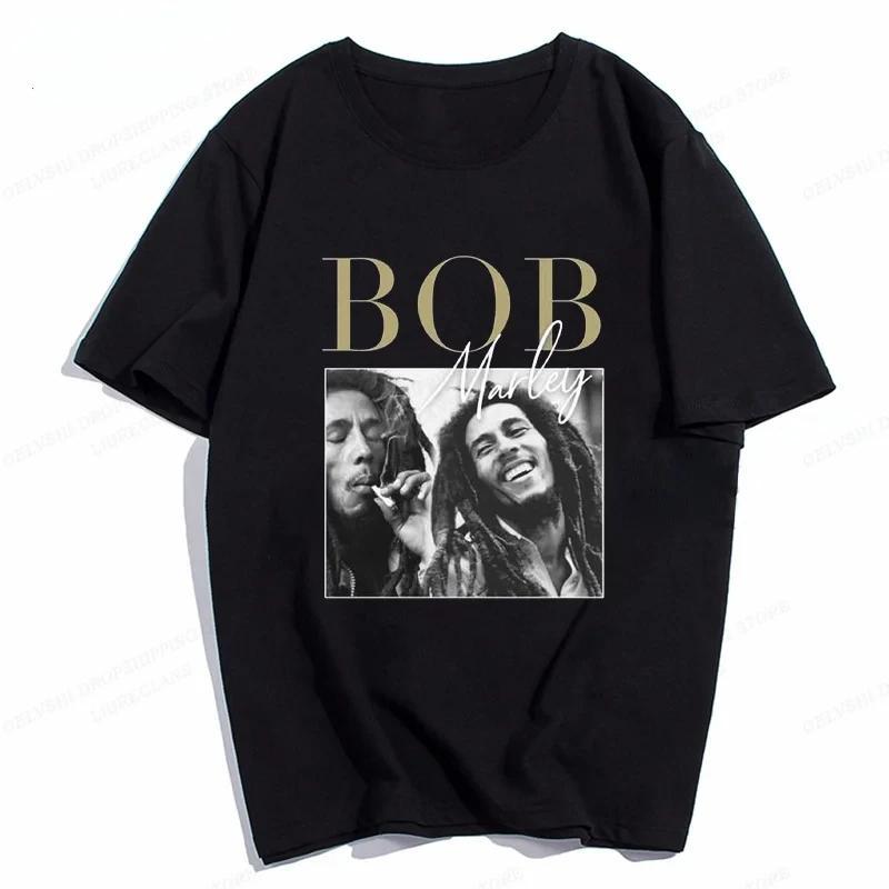 Rap Singer Bob Marley T-shirt Men's Fashion Cotton T-shirt Street Hip Hop Punk Top Women's Vintage T-shirt Solid Summer Clothing