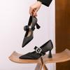1-Love rhinestone bow single shoes women's one-word pointed stiletto high heels women's suede high heels women's shoes