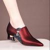 Kamínková měkká kůže na středním podpatku Deep Mouth Single Shoes Dámské Slušivé barvy na silném podpatku Špičaté Dámské kožené boty Boční zip Maminka