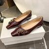 Fashion Flat Shoes Spring New Square Head Shallow Mouth Crystal Buckle Butterfly Knot Set Foot Soft Sole Non-slip Single Shoes