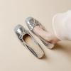 Autumn silver flat-soled single shoes women's new round head bow light mouth soft leather Doudou single shoes