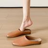 Fashion 2025 New Summer Women Mules Genuine Leather Shoes for Women Cover Toe Low-heel Slippers Round Toe Slingback Designer Sandals