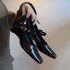 Fashion New Amber Mary Jane High Heels, Women'S One-Button Wedge Heels, Square-Toed Small Leather Shoes, High-Heeled Small Single Shoes