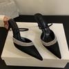 Fashion French High-Heeled Women'S 2025 Satin Rhinestone Toe Cap Slippers With Pointed Tips And Thin Heels, Stylish Small Single Shoes