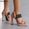 Fashion Women Sandals Chunky High Heels Soild Gladiator Open Peep Toe Women Black Shoes Buckle Beige Green Yellow Sandalias De Mujer