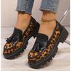 Fashion Women's Fashion Leopard Patchwork Slip-on Loafers Chunky Heel Platform Flats 2025 New Moccasins Casual Shoes Plus Size Zapatos