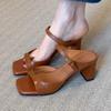 Fashion Coffee Kitten Heel Women Slippers Sexy Open Toe Metal Belt Buckle Design Slide Sandals Comfortable Street Style Mules Slippers