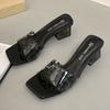 French summer 2025 new fairy skirt beach crystal heel thick heel open-toed cool slippers women's sandals
