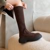 But knee boots women's flat bottom new spring and autumn elastic thin boots small long boots high Martin boots