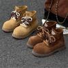 Grape mother has the same fashionable big round head contrasting color versatile pair of shoelaces thick-soled heightening short boots Martin boots