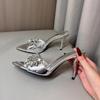 Fashion Slippers for Women's 2025 Summer New Model Rhinestone Stunning High Heels Cool Slippers Pointed High Heels Sandals for Women