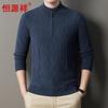 Hengyuanxiang Men's 100% Wool Thickened Stand-Collar Zipper Sweater