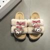 Cute cartoon bear fashion casual bow fluffy slippers women's 2025 autumn new wear cool slippers