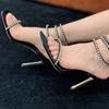 French rhinestone high heels women's stiletto 2025 new black temperament socialite sexy open-toed sandals