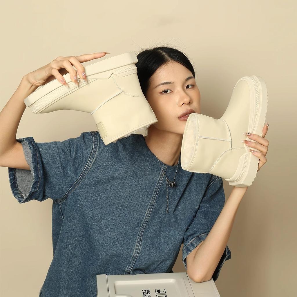 Soft leather version~ thick-soled inner heightening snow boots women's 2025 new winter piled thickened heightening cotton shoes women's shoes