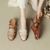 Fashion NEW Summer Women Sandals Genuine Leather Shoes for Women Round Toe Chunky Heel Shoes Elegant Cover Toe Slingback Hollow Sandals