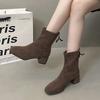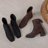 Versatile temperament French suede high-heeled short boots women's new thick-heeled square-head elastic thin boots in autumn and winter 2025