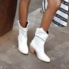 Bílé kovbojské boty pro ženy 2024 Podzim Zima Robustní plisované kotníkové boty Dámské Vintage špičaté boty Western Cowgirl Botas