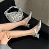 Silver High Heels Korean Design Sensation Shallow Mouth Chunky Heel Square Head Women's Shoes Versatile Business Casual Summer