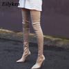 Eilyken Sexy Fashion Pointed Toe Over-The-Knee Boots Women Red Zipper High Heels Shoes Winter Striptease Motorcycle Long Botas
