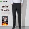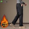 These FIRS men's straight-leg casual pants are designed for autumn and winter. They are fleece-lined and thickened to provide warmth, comfort, and protection against the cold. Made from a soft, skin-friendly blend of cotton, polyester, regenerated cellulose fiber, and spandex, they offer slight elasticity and a high-waist fit for everyday and workplace wear.