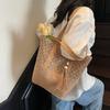 Simple woven straw bag solid color woven bag large capacity shoulder tote bag seaside vacation beach bag women