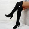 Sexy Round Toe Over-the-knee Thigh High Boots Womens Modern Shoes Winter Suede Pleated Side Zipper Thick High Heeled Boot