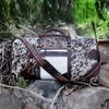 {Lightweight Canvas Purse} This awesome duffle travel bag is perfect for those who are looking for a stylish and sophisticated way to travel and is made up of natural, thick cowhide leather, which gives it a luxurious look. The strong stitching ensures that the bag is durable and sure to last. The beautiful combination of white, brown, and black makes this bag stand out from the crowd. The high-quality materials and craftsmanship make this duffel travel bag a must-have for any traveler.