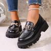 Large size thick-soled black small leather shoes for women's spring and autumn new one-pedal work shoes metal buckle