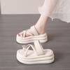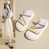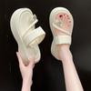 TEH3810 new French toe slope heel thick-soled slippers women's 2025 summer outer wear holiday style beige sandals