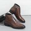 Fashion Spring New Brand Mens Formal Pointed Boots Genuine Leather High Top Lace Up Chelsea Boots Dress Ankle Boots for Men Casual Shoes