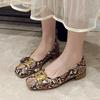 Fashion 2025 Summer Women's Snake Print Square Toe Slip-On Women's High Heels Metal Decoration Fashion Pumps for Office Plus Size Shoes