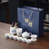 Light luxury travel tea set Huang Ru kiln peony set Kung Fu teapot