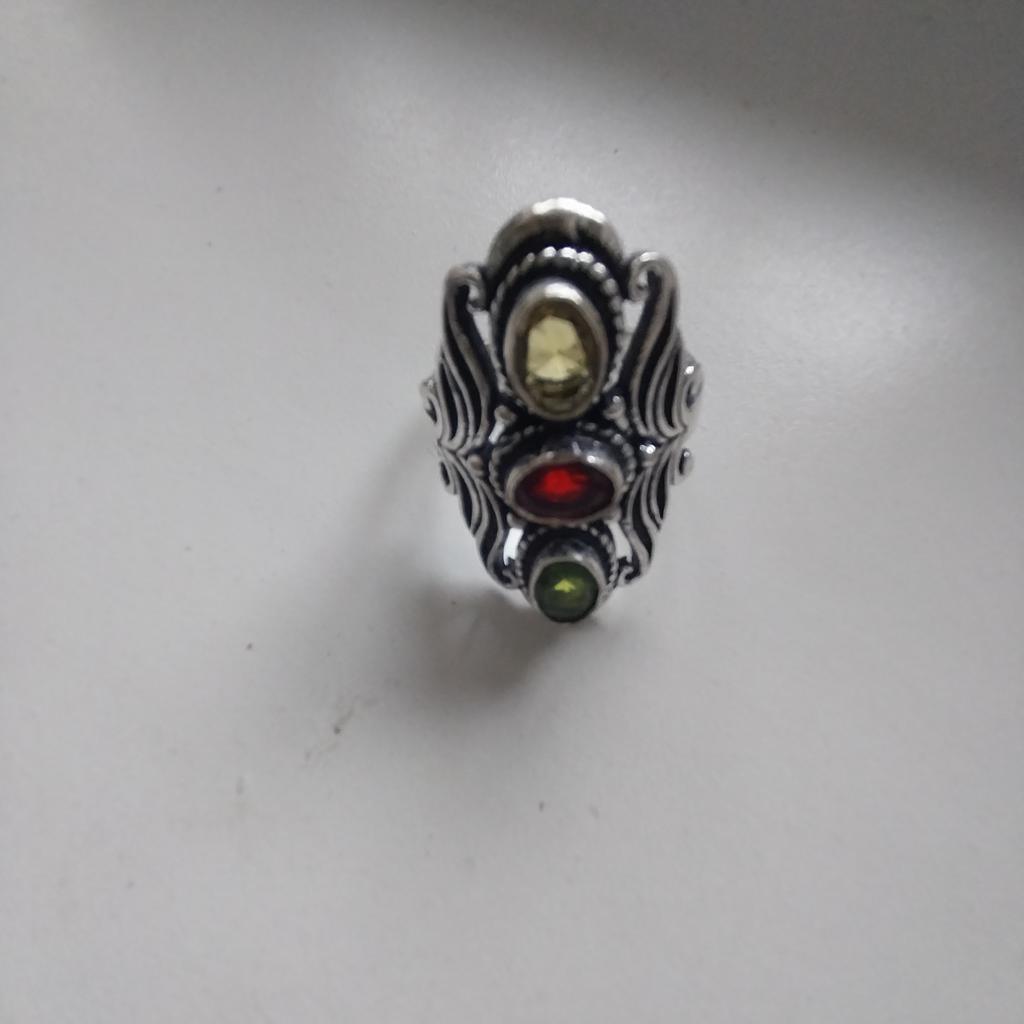 Looks better in the photo, in reality it's significantly smaller and the stones except for the garnet are very dull, not as bright as in the photo!
