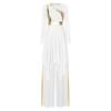 Womens Liturgical Dance Set Round Neck Long Sleeve Metallic Shiny Patchwork Irregular Dress Wide Leg Pants