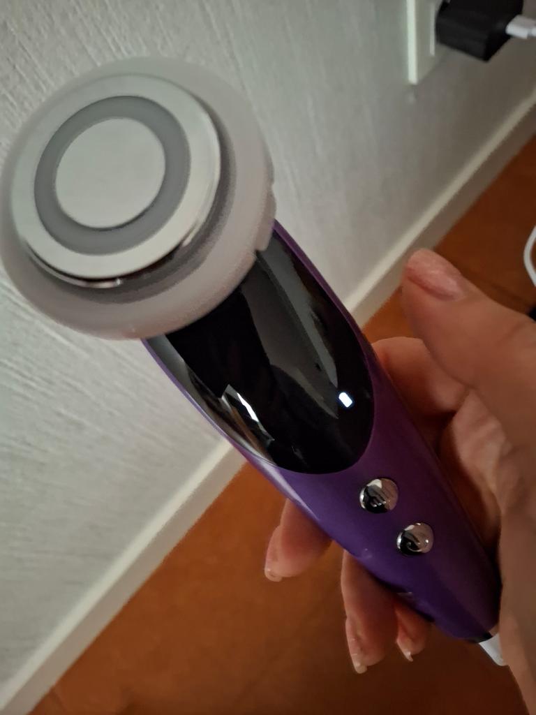 It's a facial beauty device with EMS micro-current(Galvanic ions), vibrations warm massager, red, blue and orange light that can realize deep cleansing, better rejuvenation and facial lifting.