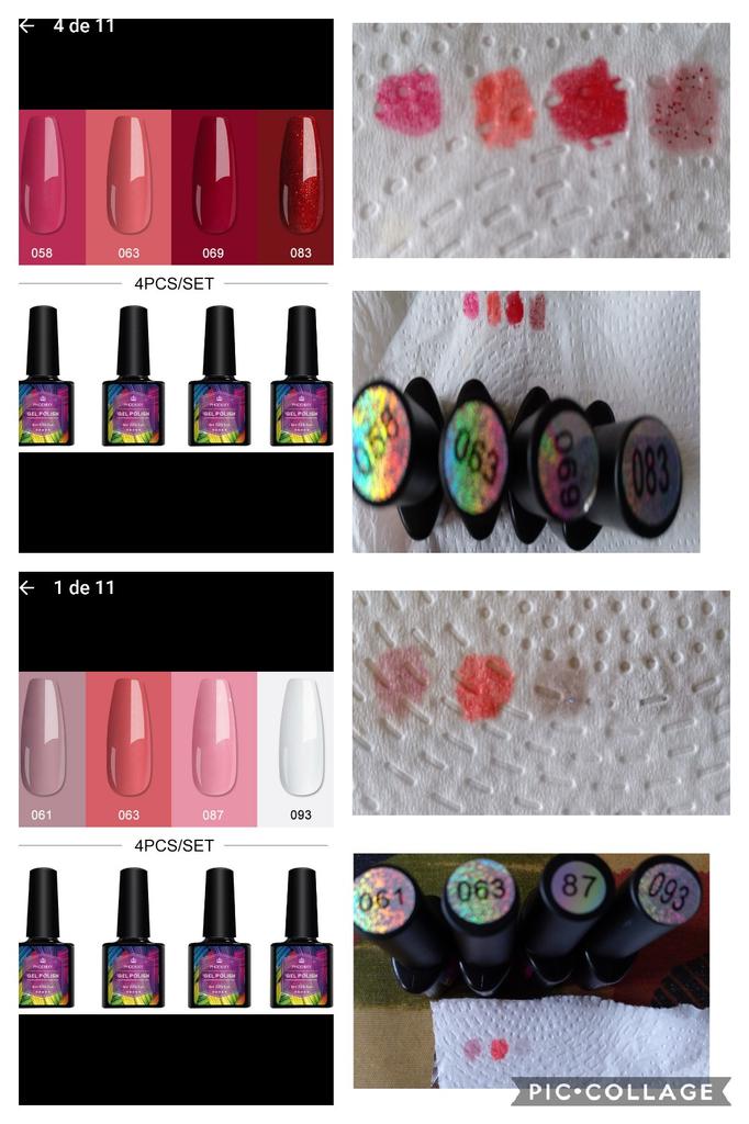 Los esmaltes llegaron bien aunque se demoró más de lo habitual porque sufrió retraso, aún así bien embalados y en perfecto estado. Tras probarlos veo que tienen menos cantidad (me da la sensación de que sólo tienen producto hasta más o menos la mitad) y lo más importante: cuando te pintas las uñas de una mano, al llegar a la última el producto se encoge un poco (aunque no se haya secado con la lámpara) y tras pasar por la lámpara también se encoge. Como los colores me han gustado y no todo es malo, doy tres estrellas.