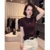 Pure Cotton High Waist Short T-shirt for Women's Summer New Round Neck Rasp-shoulder Top Short Sleeve Base Shirt