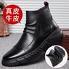 Boots Spring and Autumn Leather Breathable High-top Casual Leather Shoes Men's Business British Style Leather Boots