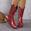 Womens Knee-high High Heel Leather Boots Thick Heels Pointed Toe Cool Fashion Sexy Winter 2024personality Punk Style Botas Mujer